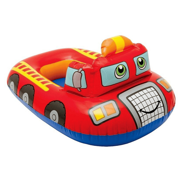 - Para poder disfrutar de una tarde de piscina o vacaciones en el agua junto a tus hijos pequeños fue fabricado este flotador inflable Intex Kiddie Float con diseño de camión de bomberos para bebe de entre 1 y 2 años.